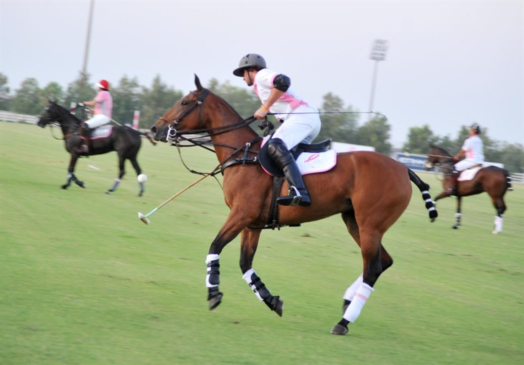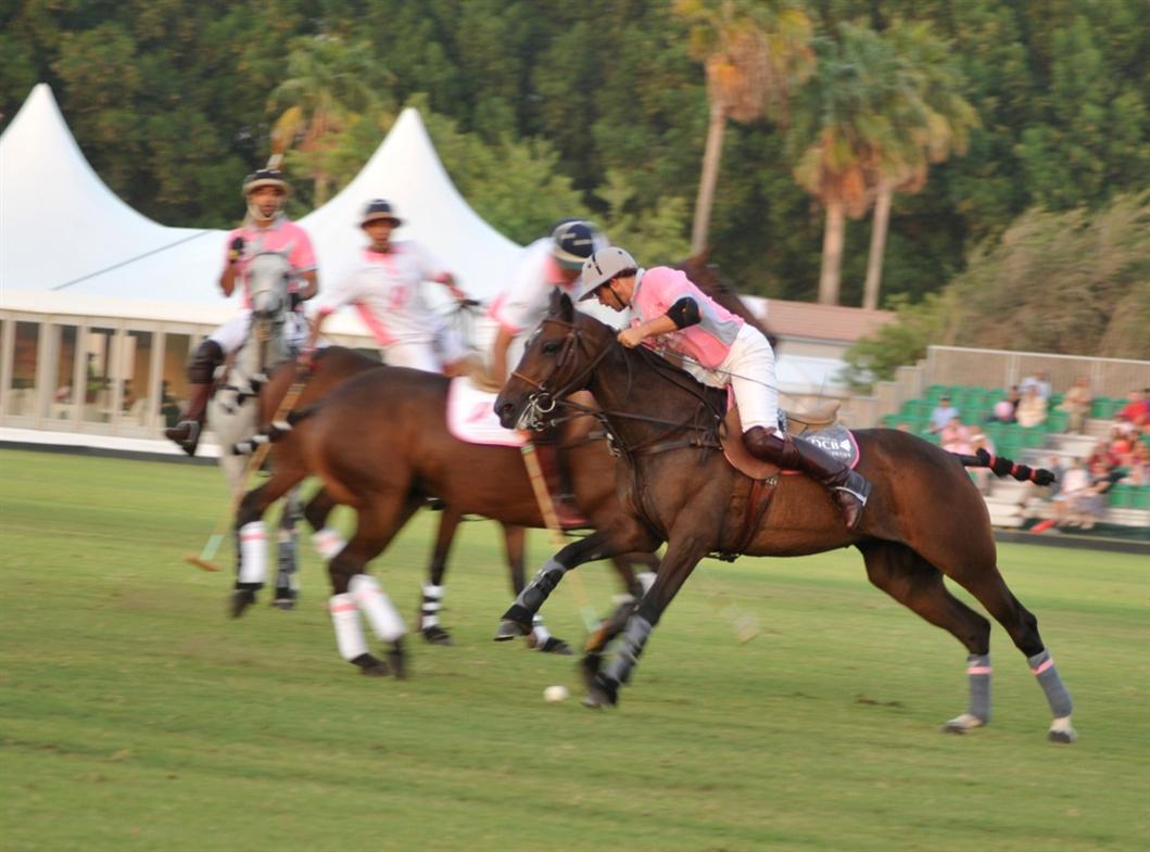 Polo’s Emirati Bin Desmal brothers and Argentina’s Oscar Colombres combined to boost ADCB into the top spot at the second renewal of the annual Pink Polo charity clash on Saturday, defeating the Estee Lauder Polo Team, 5-3.